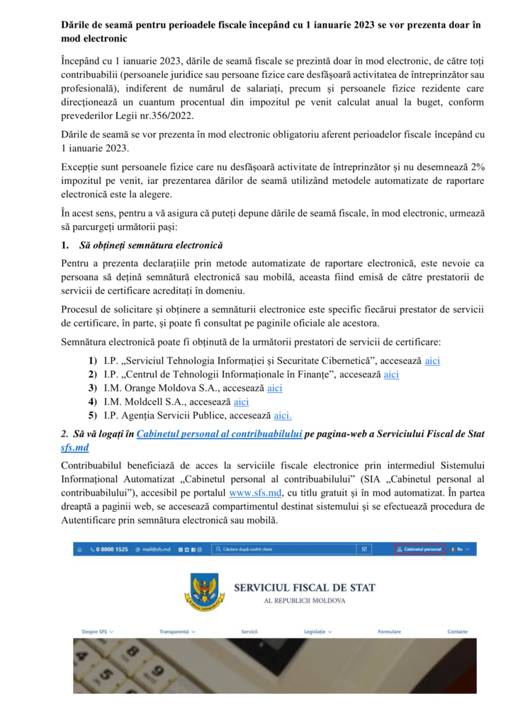 Comunicat informativ: Dările de seamă pentru perioadele fiscale vor fi prezentate în regim electronic